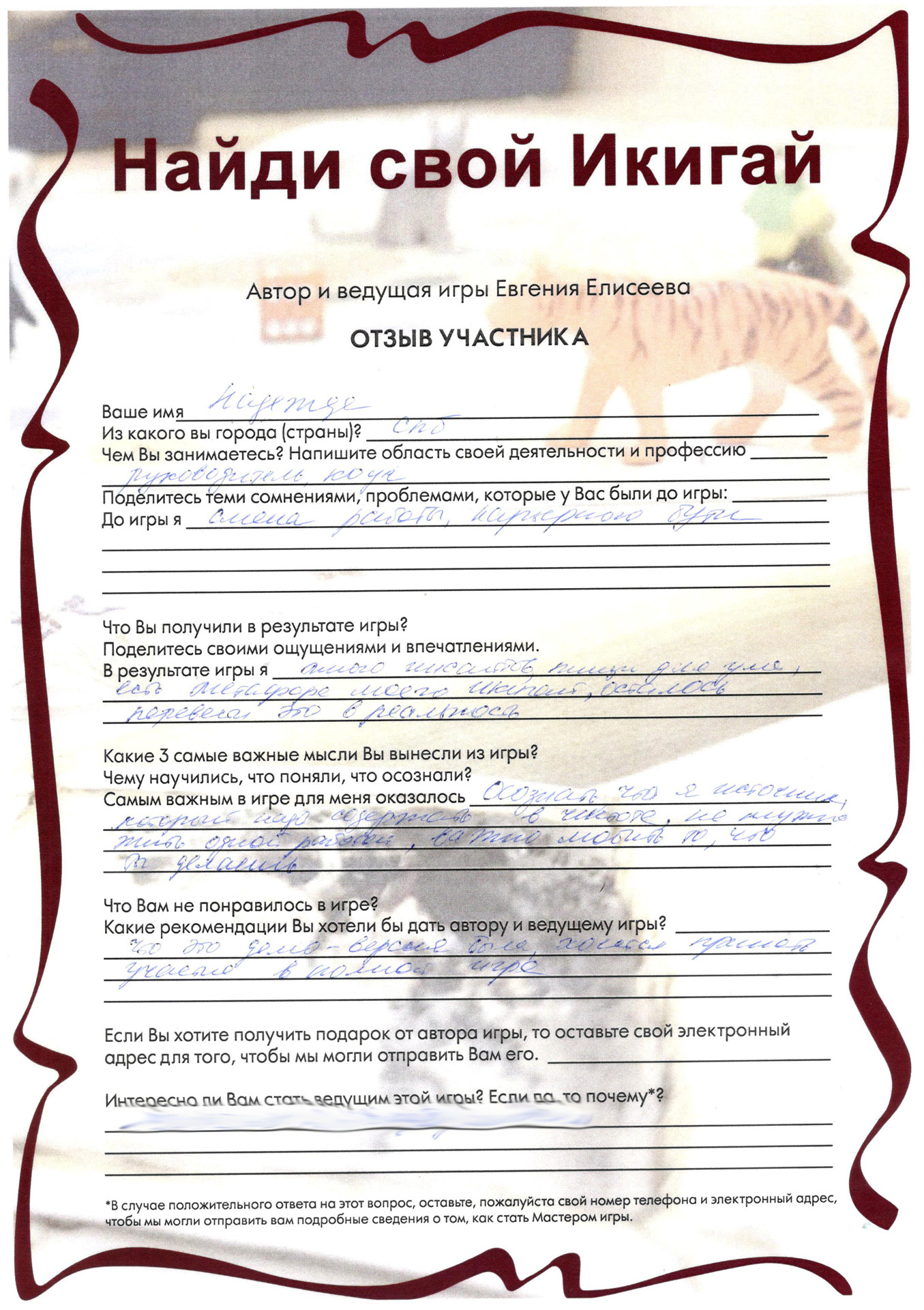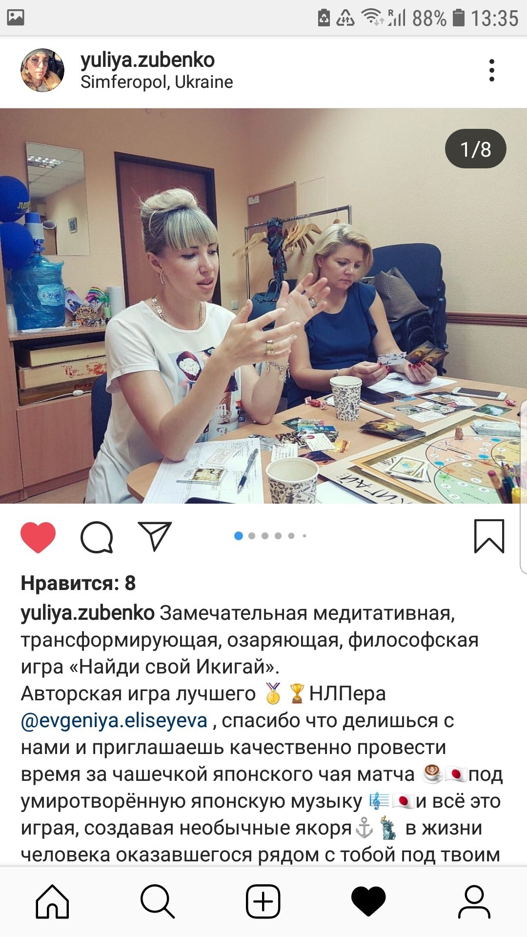 До игры я задумывалась о смене работы, карьерного пути и в результате получила много инсайтов, пищи для ума. Есть метафора моего Икигай, осталось перевести это в реальность.